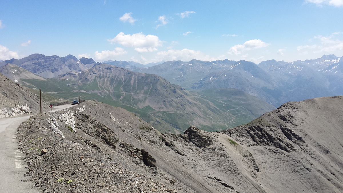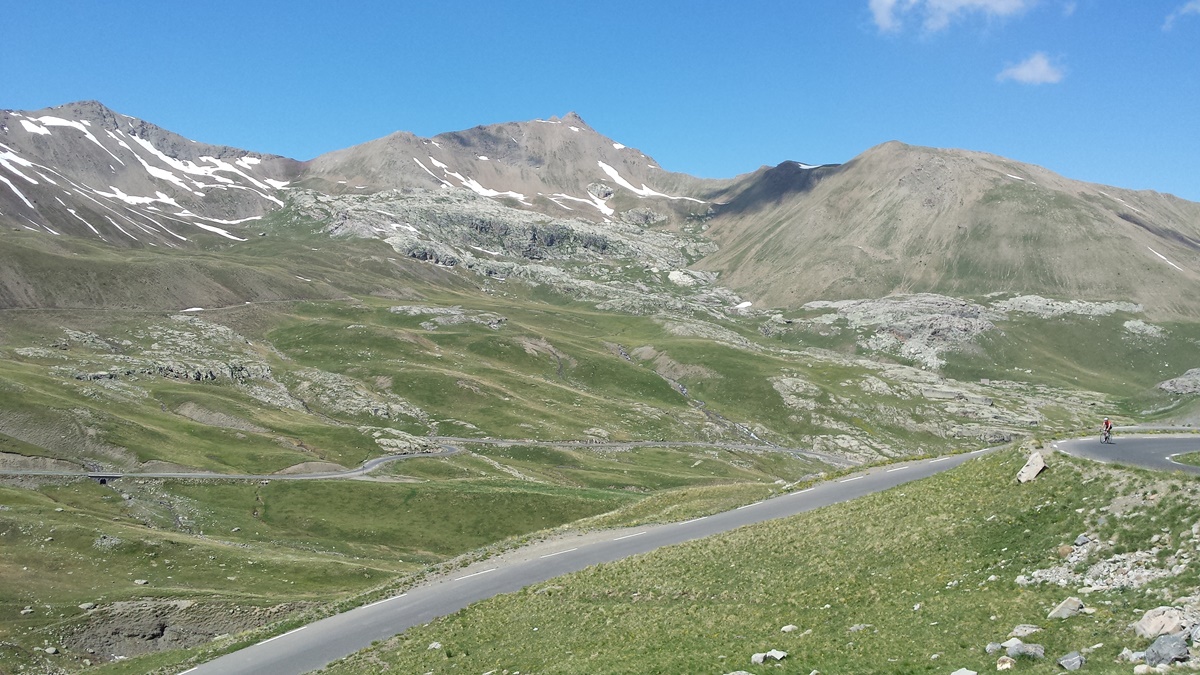 Col de la Forclaz 1527m - Aiguille du Midi 3842m (Seilbahn) - Colle del Nivolet 2612m - Col du Telegraphe 1544m - Col du Galibier 2642m - Col de Vars 2109m - Col de la Bonette 2802m